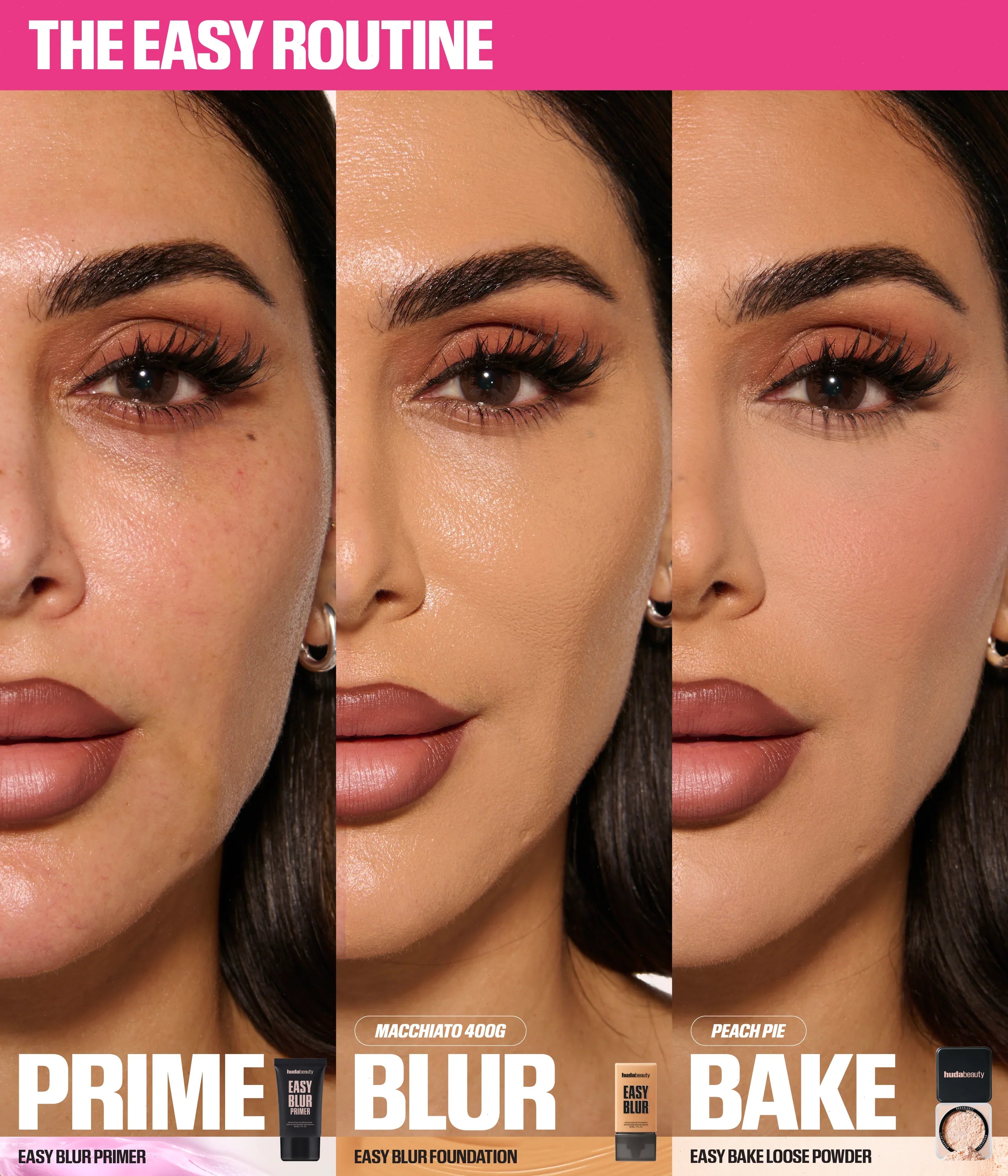 - Step 1: Prime with our OG Easy Blur Primer, or NEW Easy Blur Primer in Bronze Fudge; Huda recommends using two fingers length worth of product.
